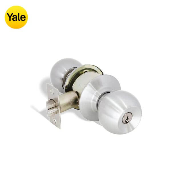 Cerradura tipo pomo cilíndrico para habitación, en acero inoxidable satinado, para puertas derechas e izquierdas.